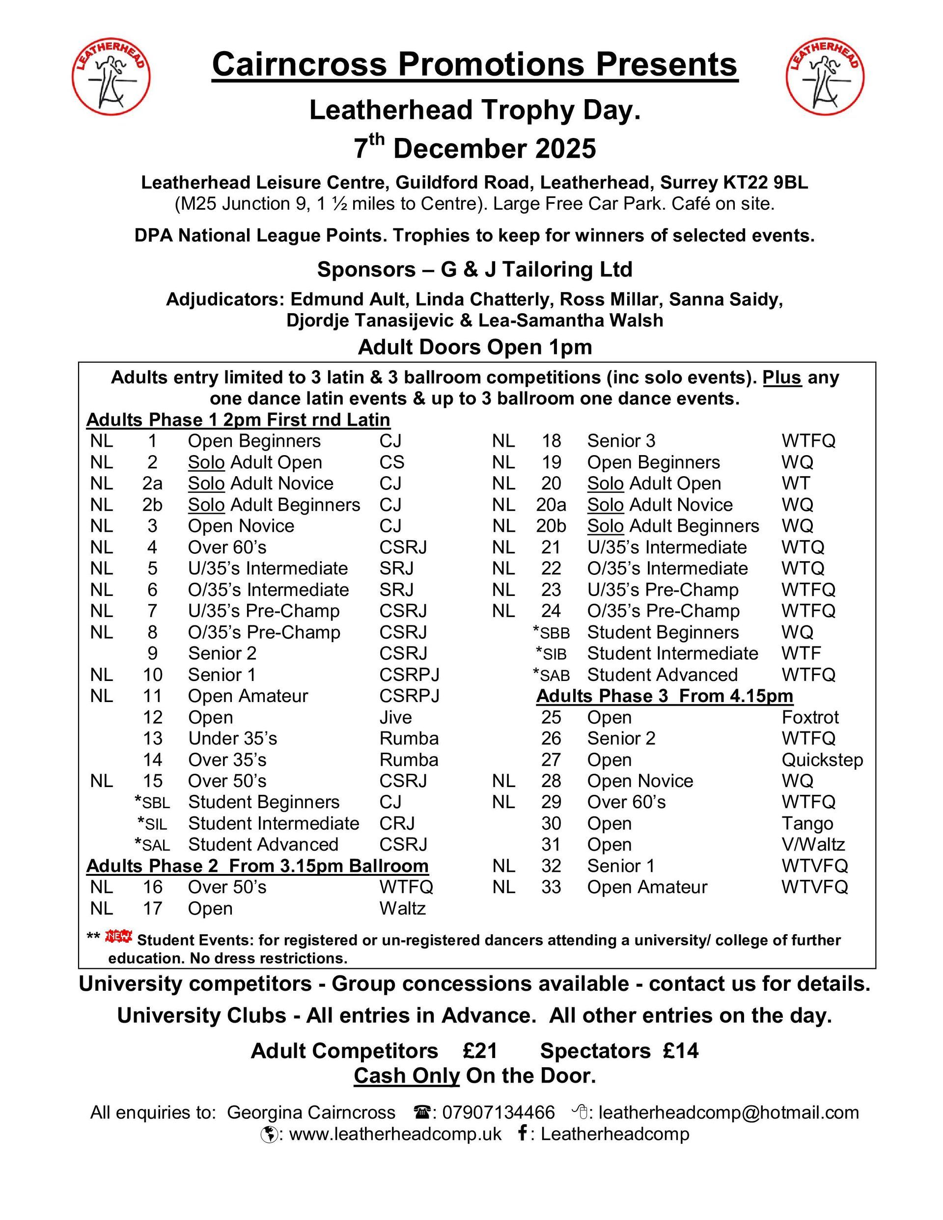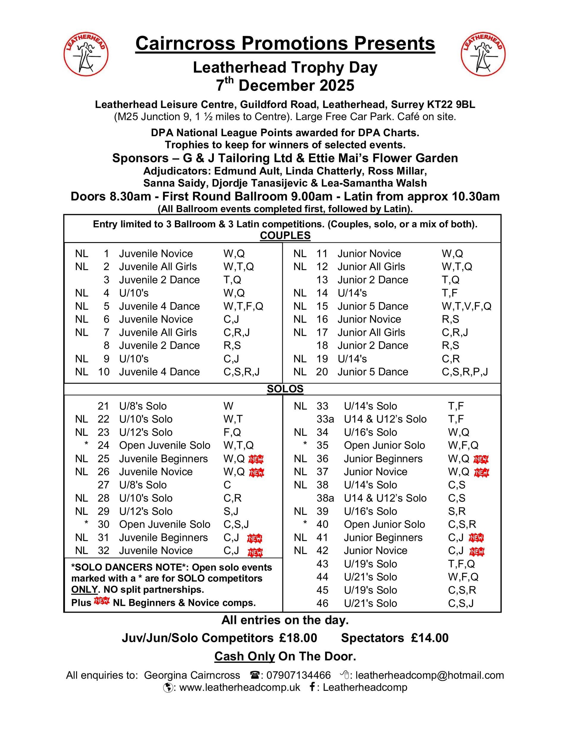 Download, print, fill in & bring on the day to save time. No Entries in Advance - All taken on the day.