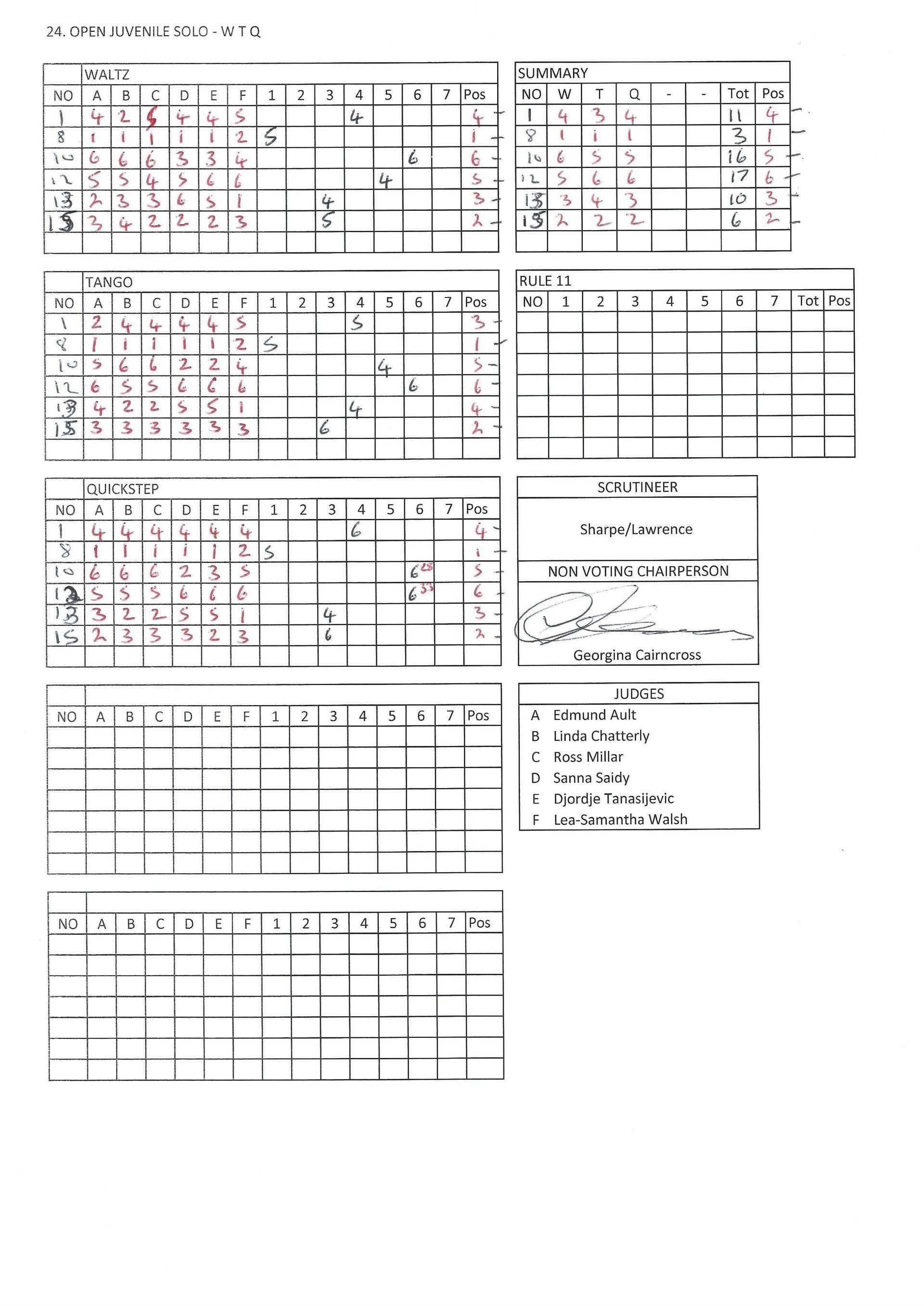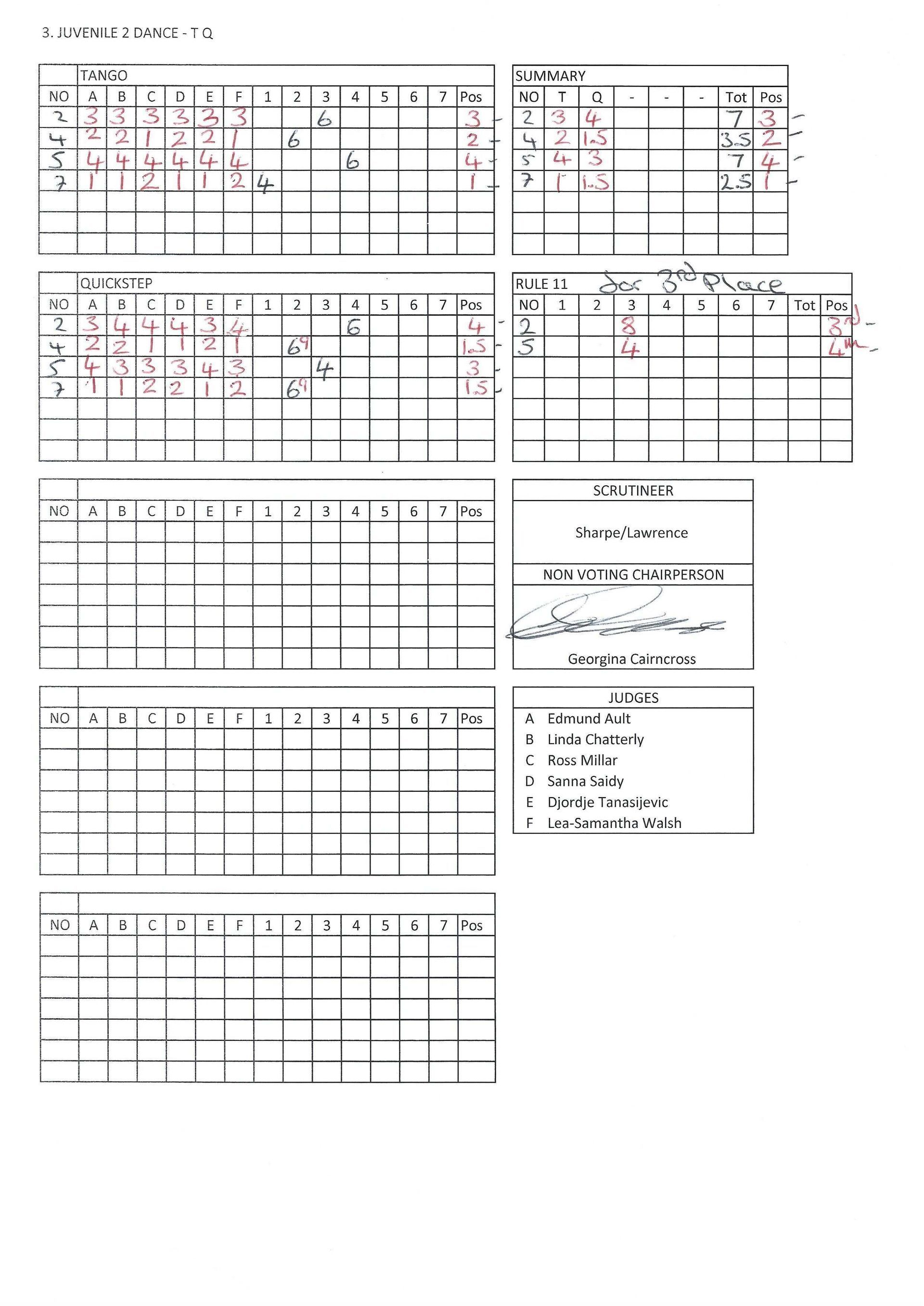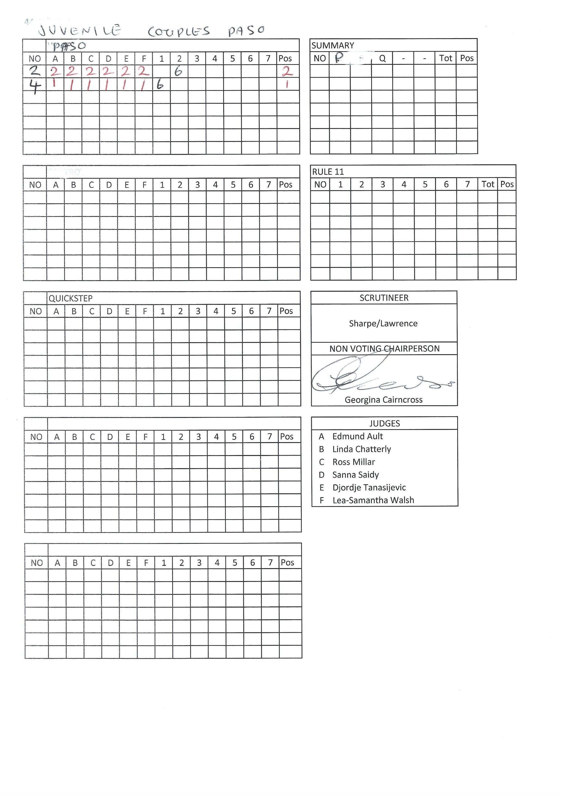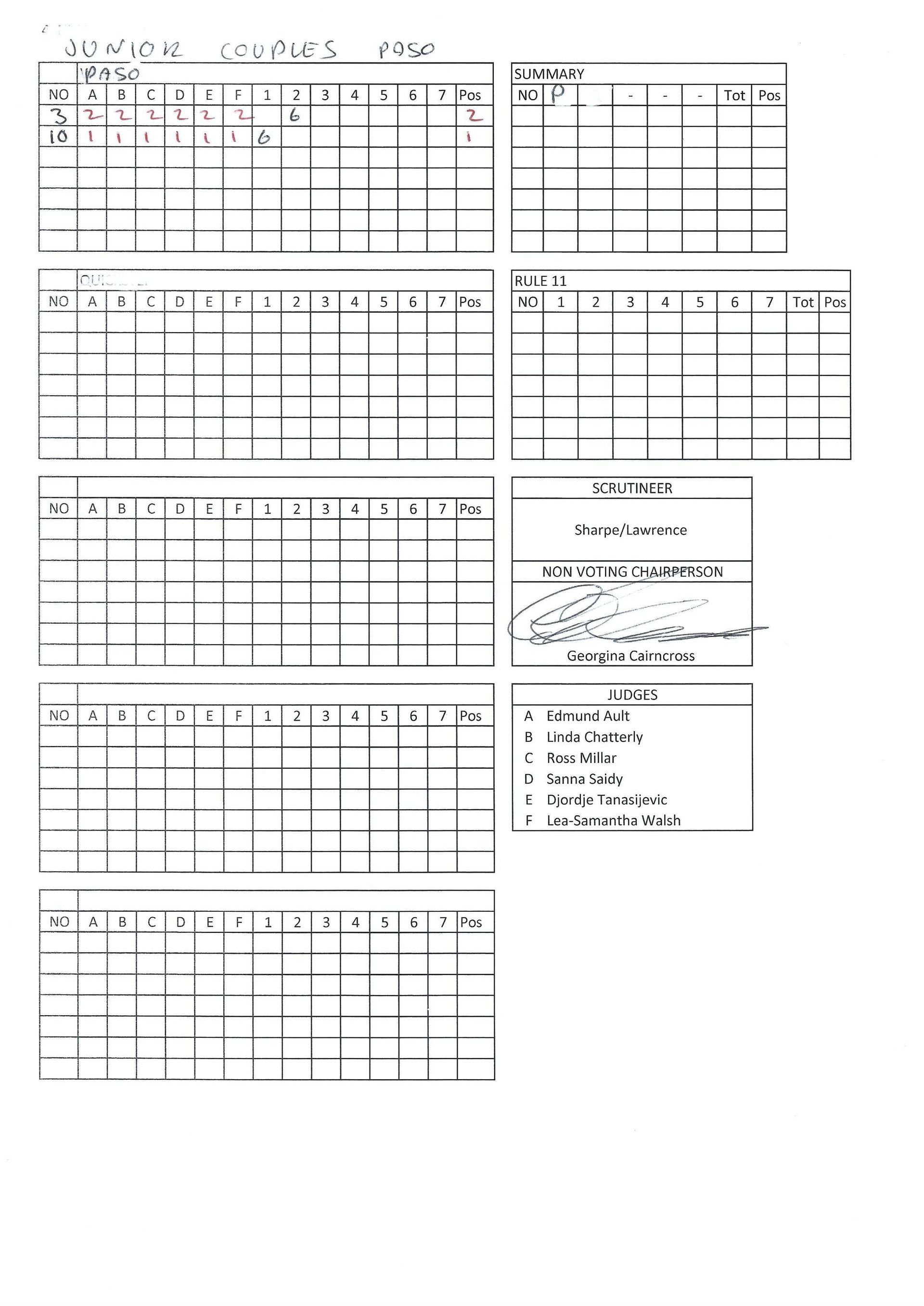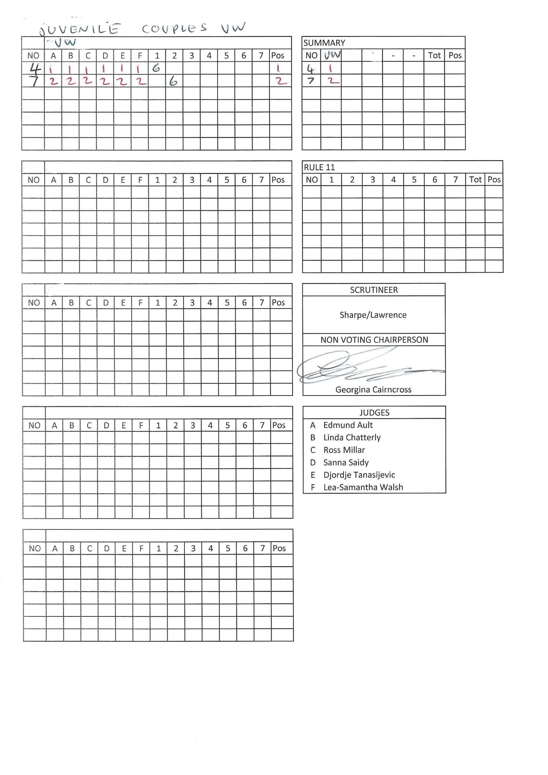 Juvenile & Junior Couples Results.