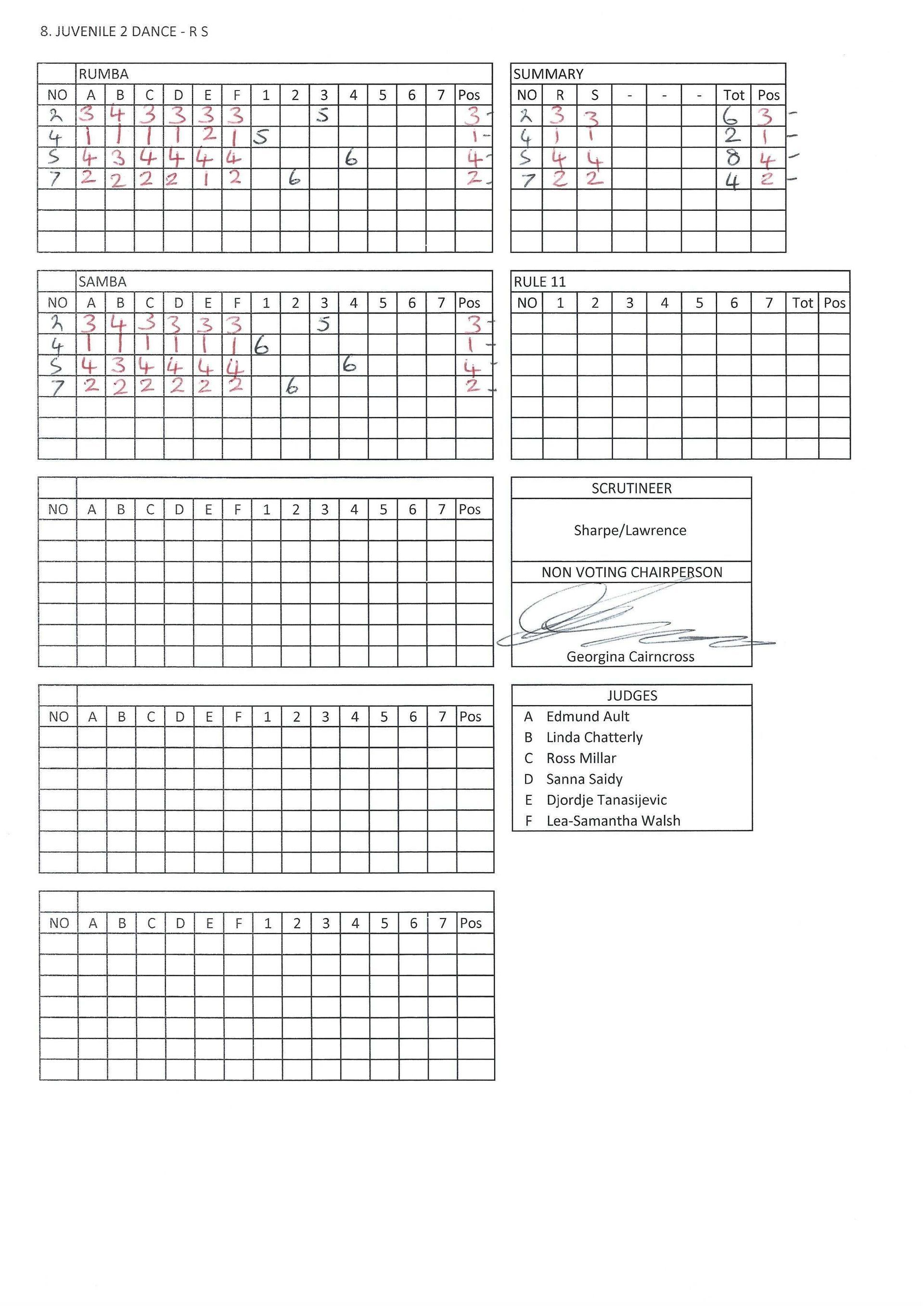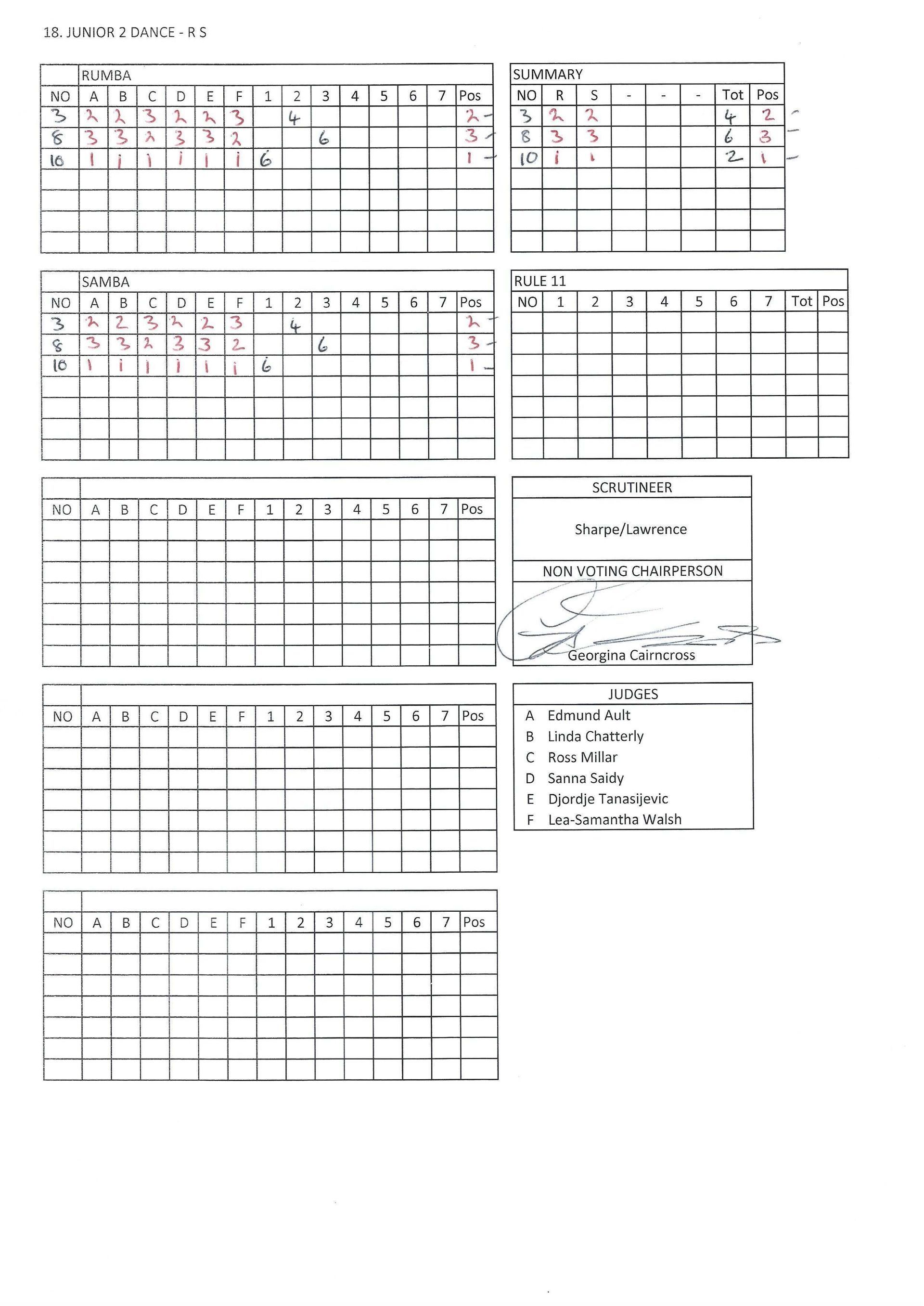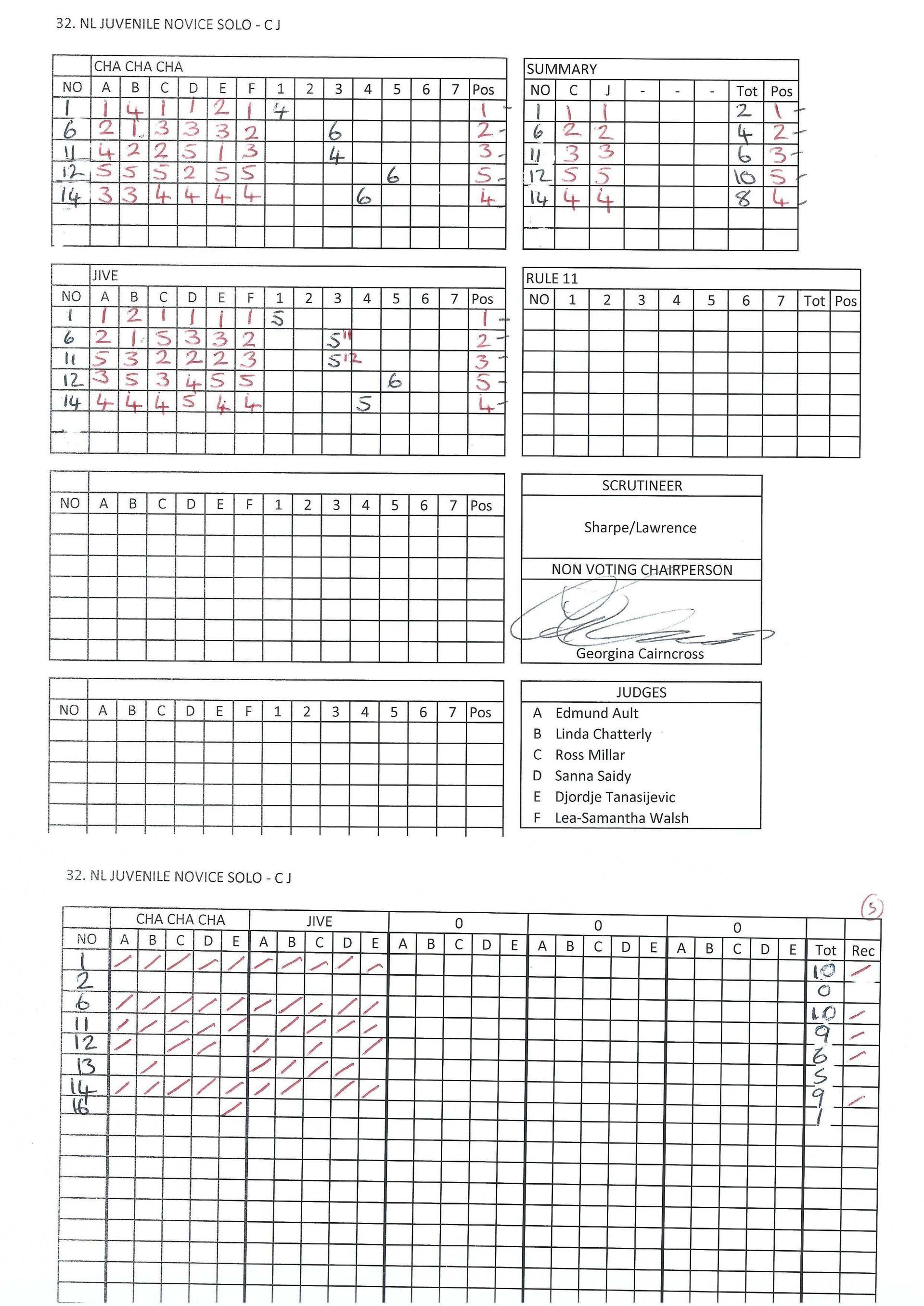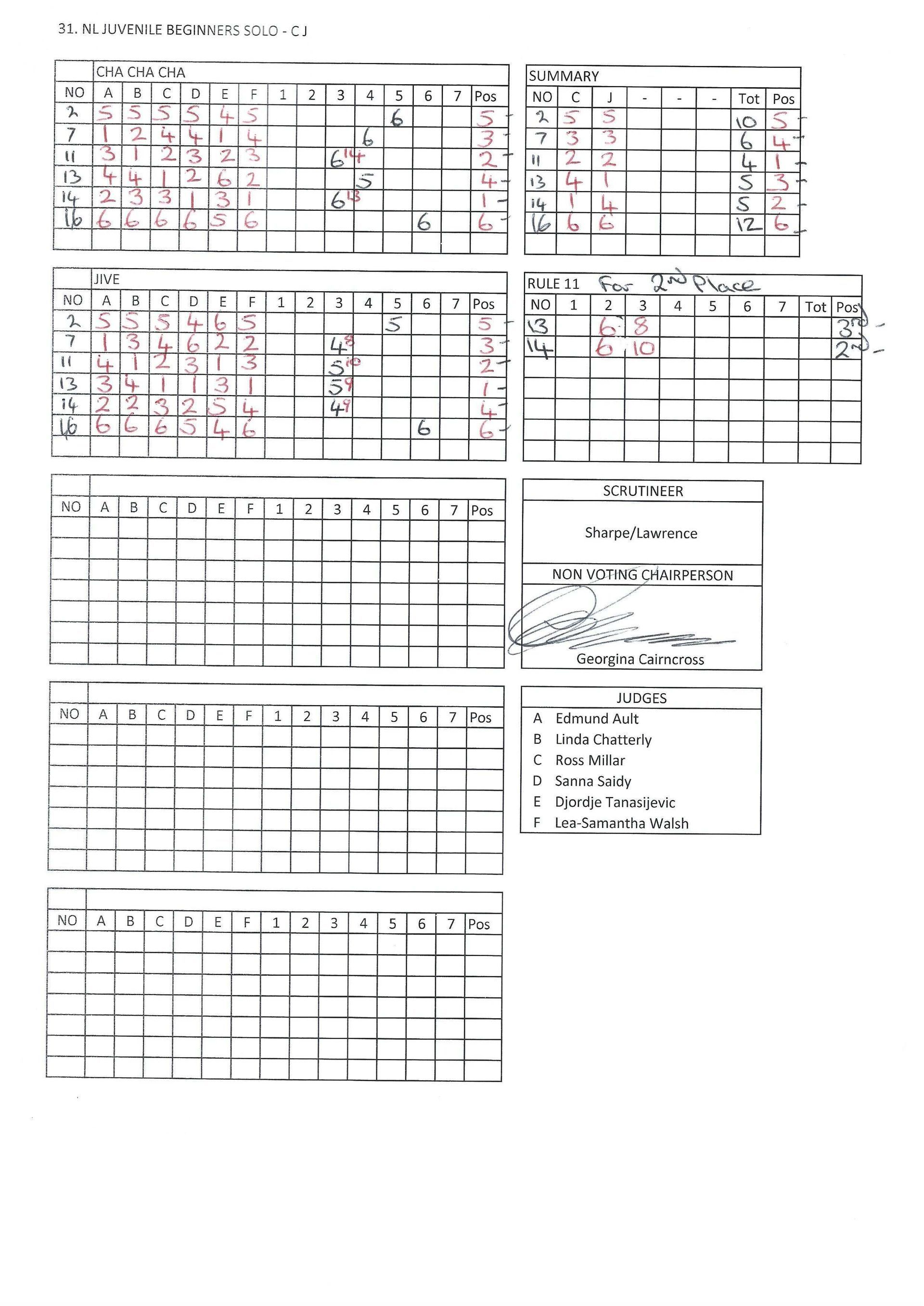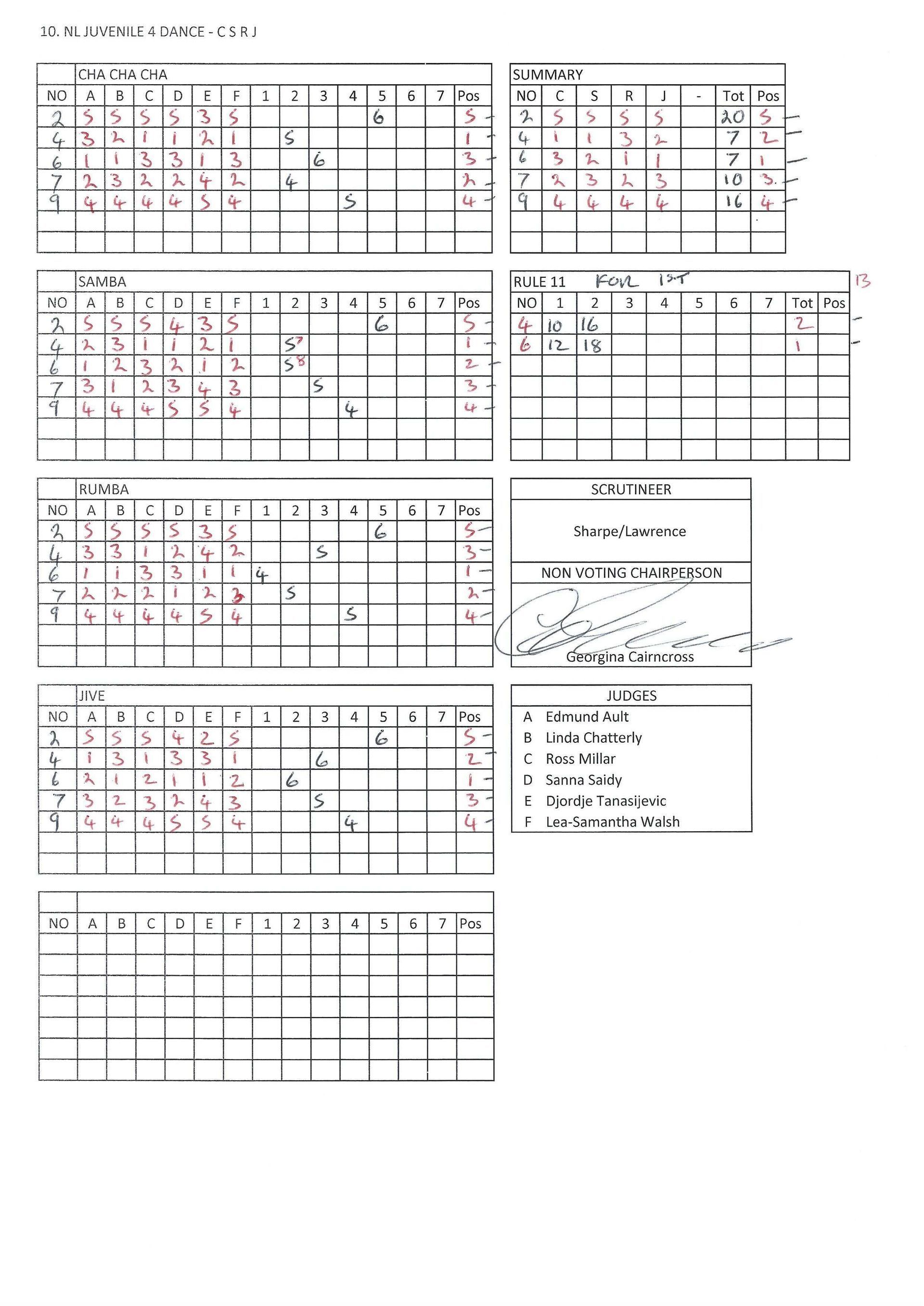 Juvenile & Junior Couples Results.