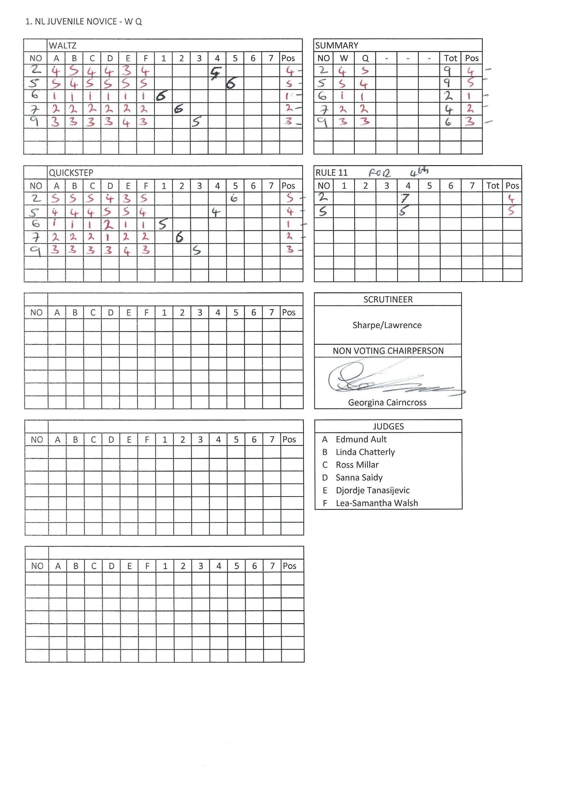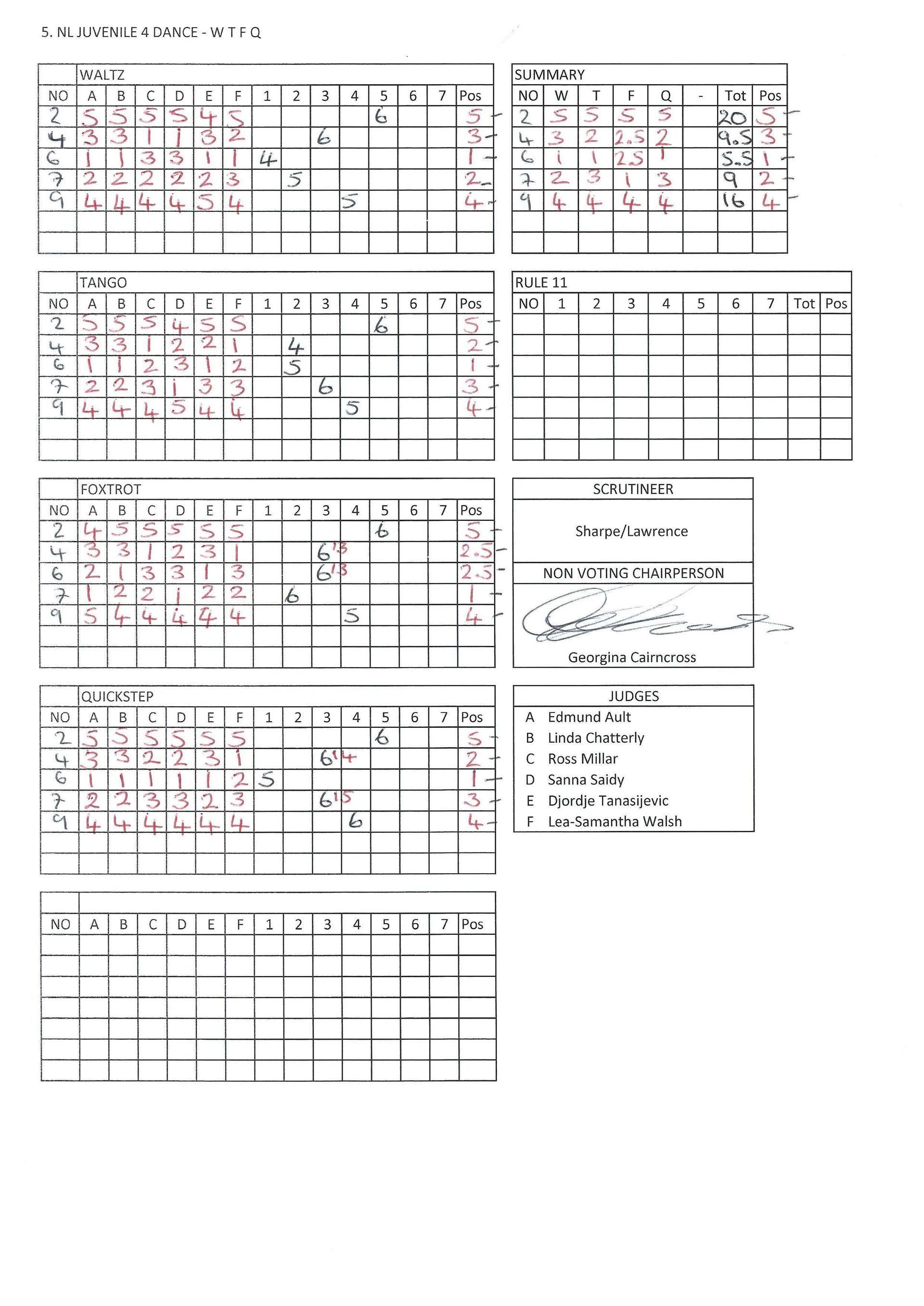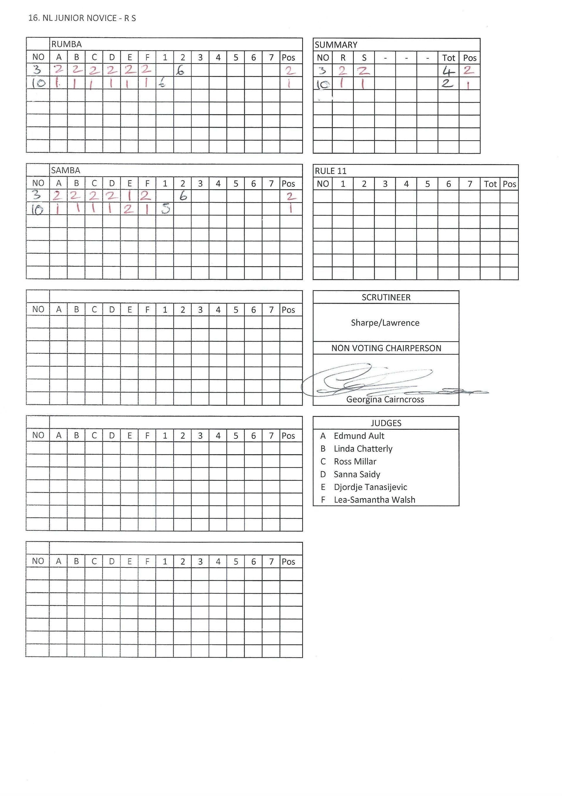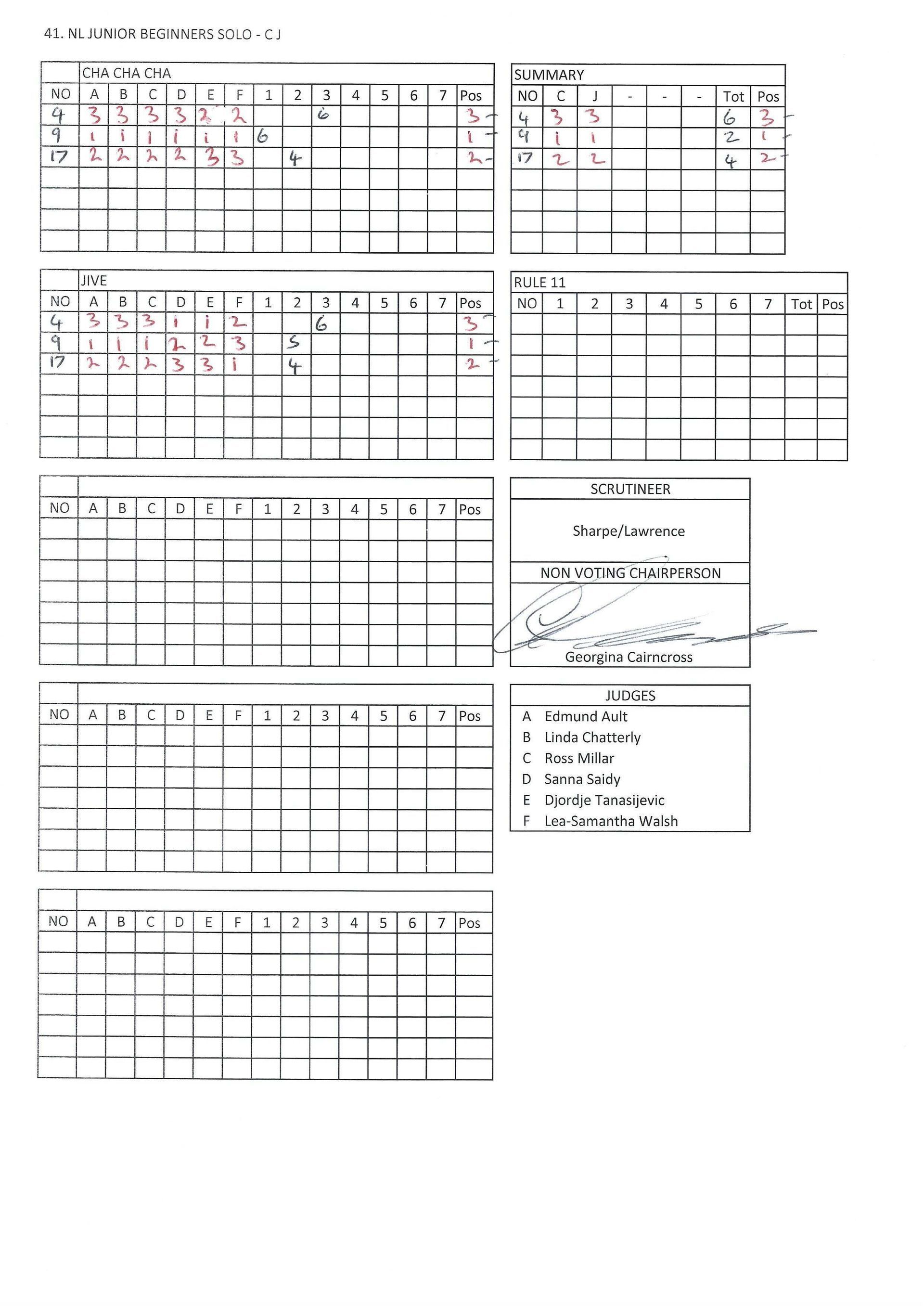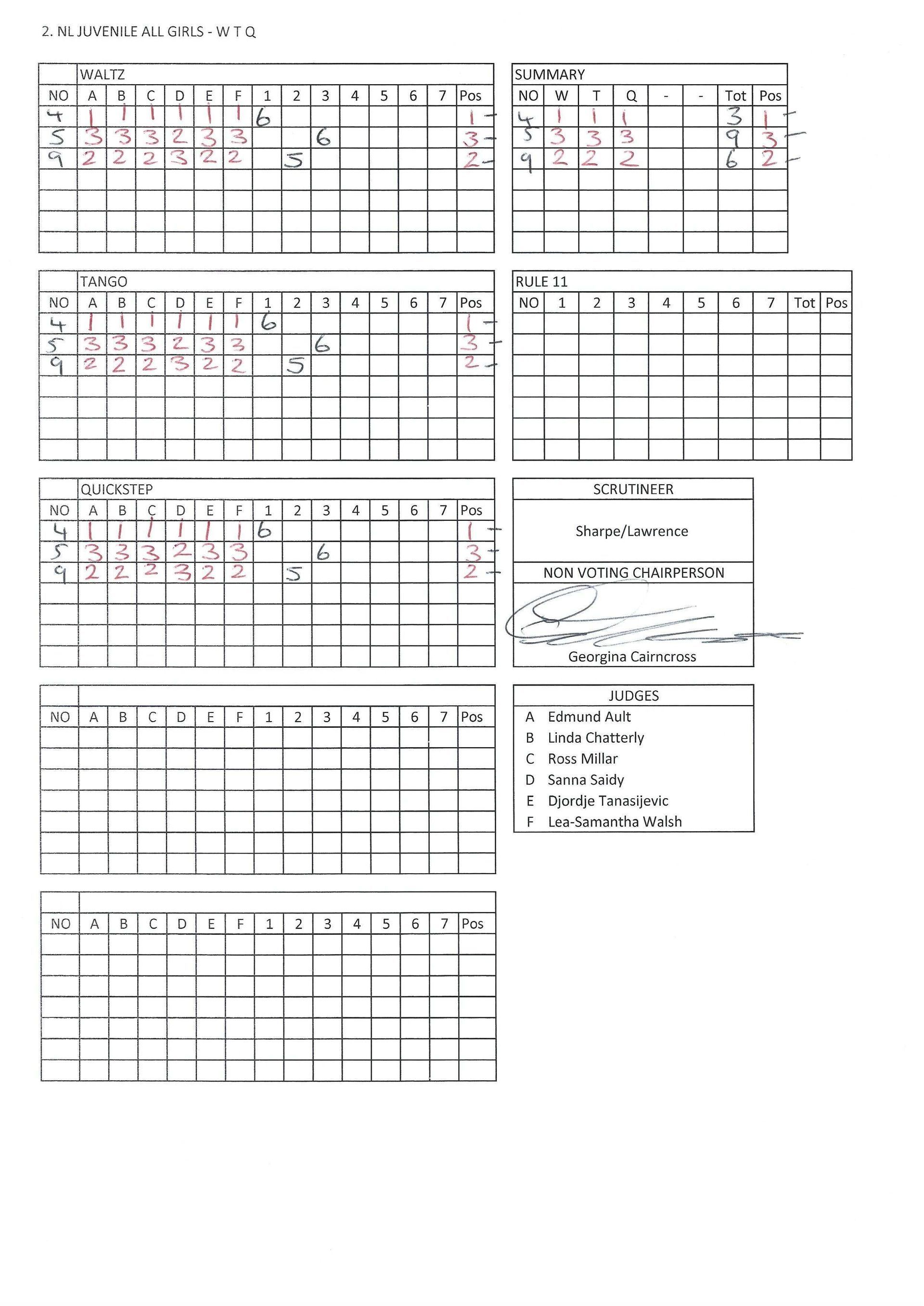 Juvenile & Junior Couples Results.
