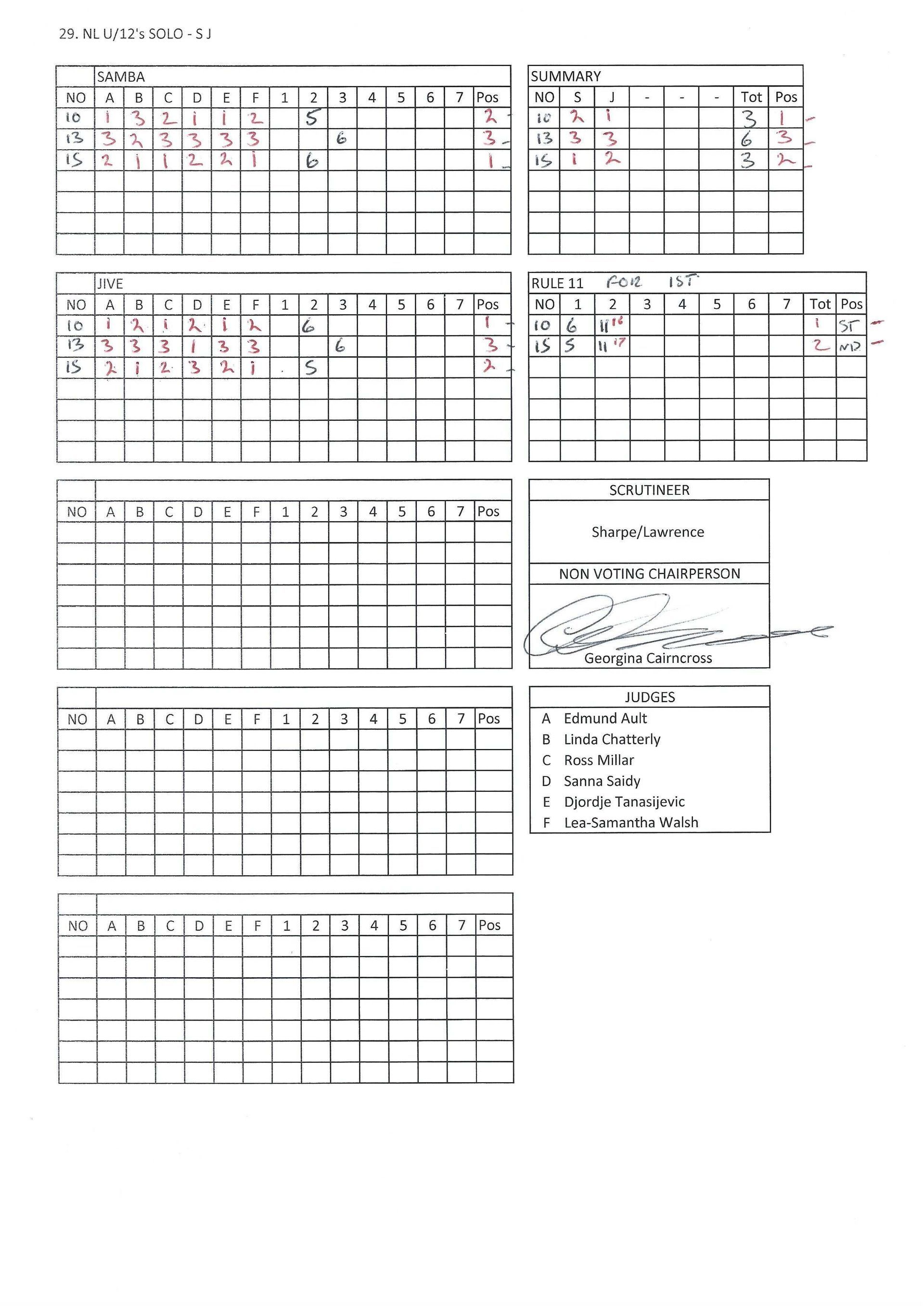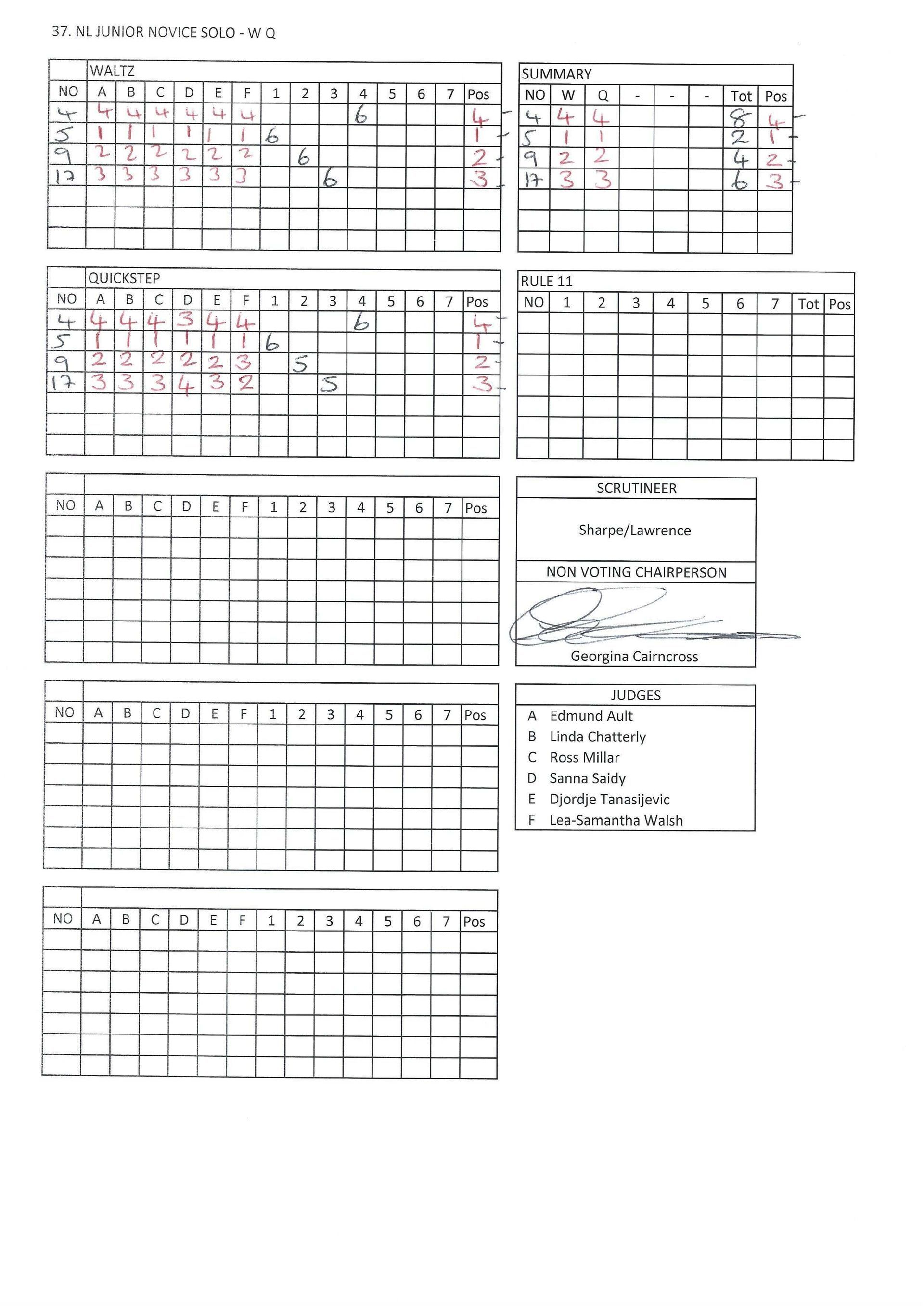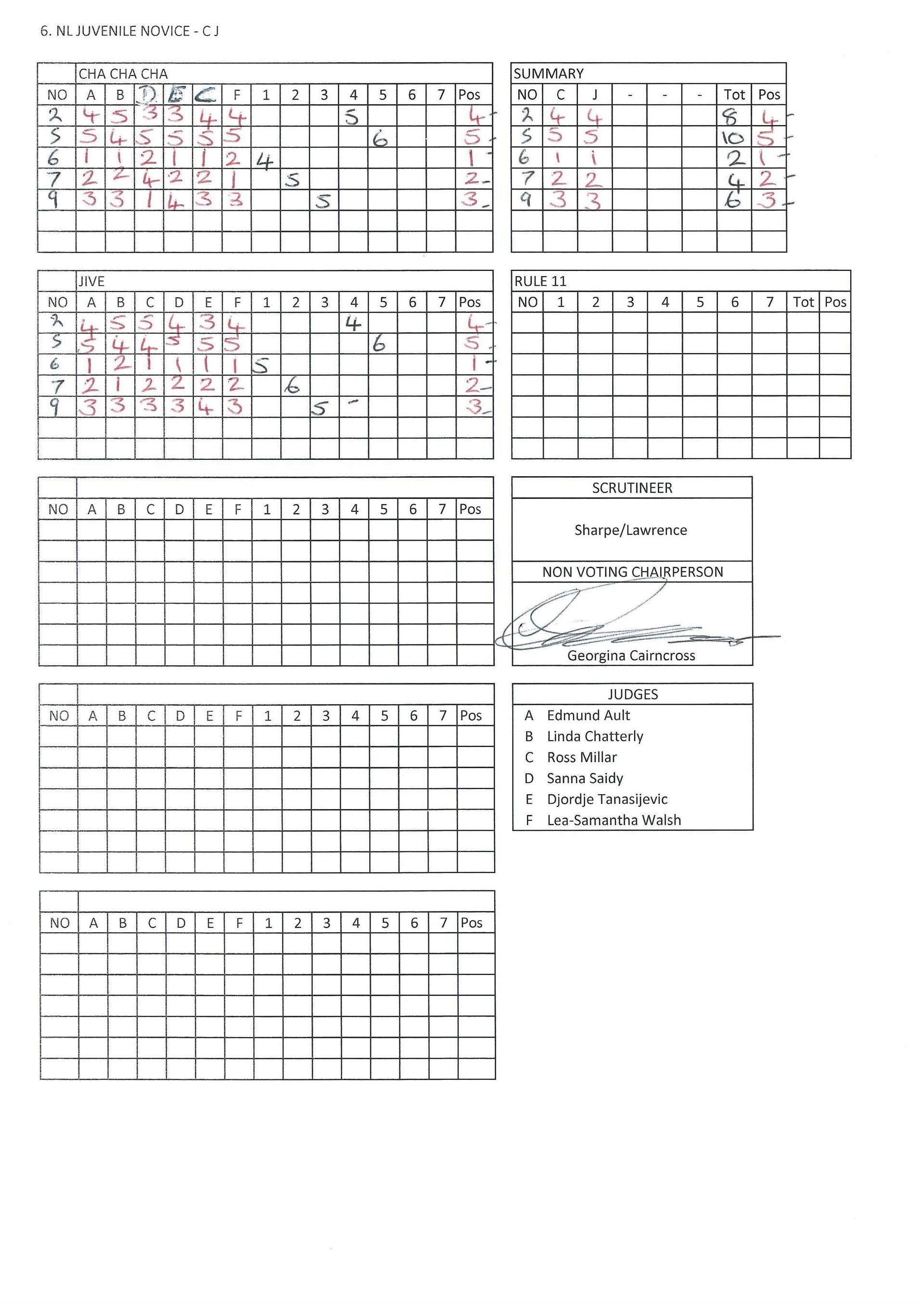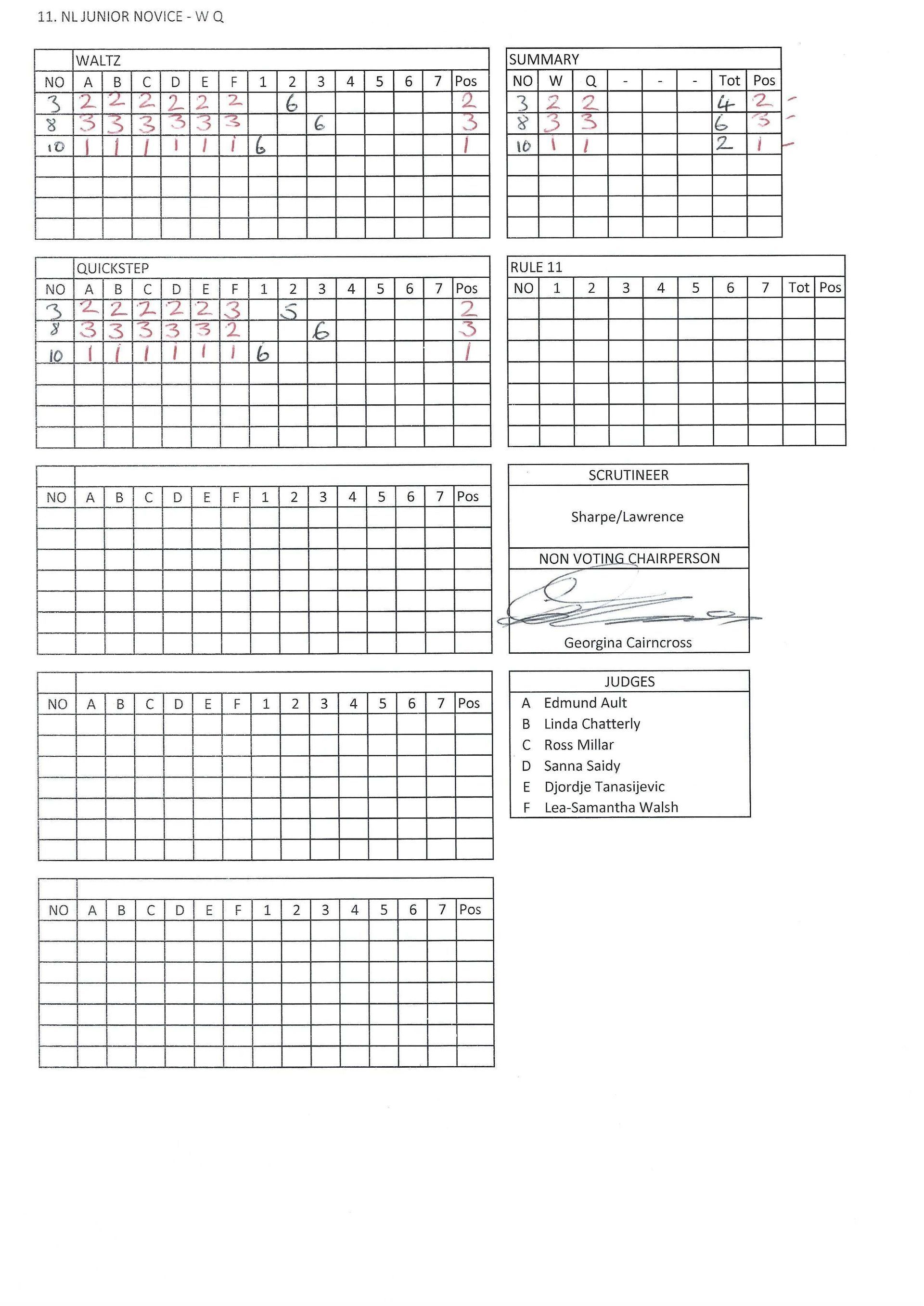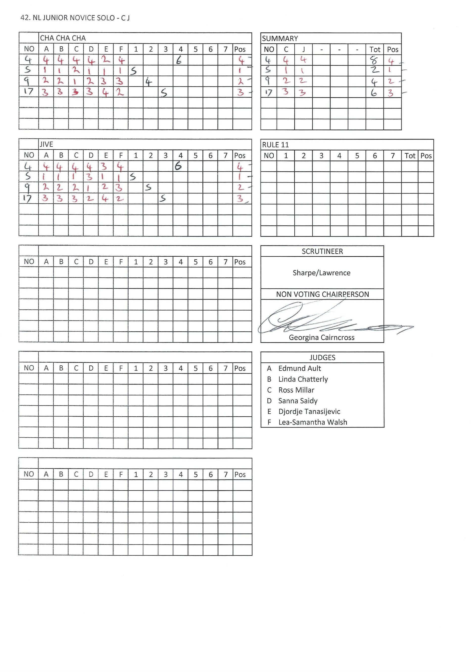 Juvenile & Junior Couples Results.